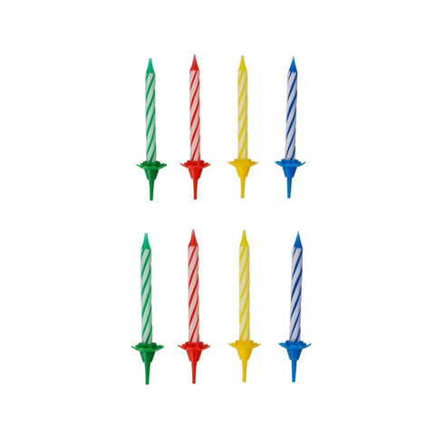 Fackelmann vous propose ces 2 lots de chacun 24 bougies pour gâteau d'anniversaire et ses 12 bobèches assorties pour les planter correctement dans le gâteau. Le lot contient 6 bougies de chaque couleur ! rouge, vert, bleu, jaune.