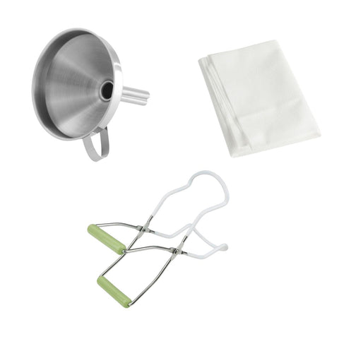 Pince 22 x 8 x 3,5 cm | Tissu 75 x 75 cm | Entonnoir 10 x 11 cm