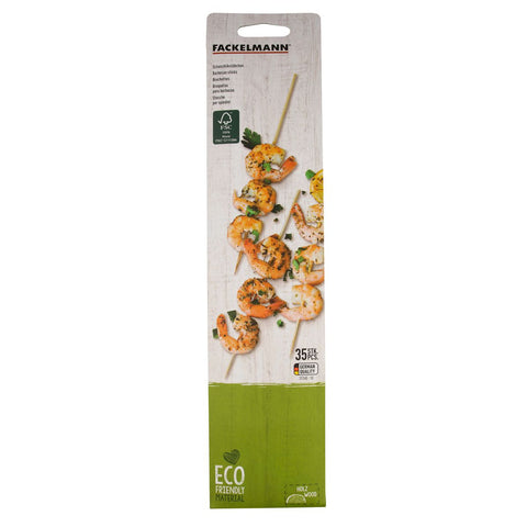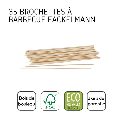 Les pics à brochettes de Fackelmann sont en bois et à usage unique. Dans un paquet de brochettes il y a 35 pièces. Les brochettes ne sont jamais au goût de tout le monde, c'est pour cela qu'il est préférable que chacun constitue sa brochette comme il le souhaite. Ainsi, chacun pourra préparer des brochettes de crevettes, des brochettes de poulet, des brochettes de bœuf, des brochettes de canard et autres mixé avec des légumes comme les poivrons, les oignons ou les champignons.
