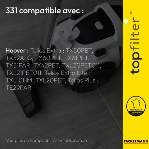 TopFilter, fabricant français de sacs d'aspirateurs, propose ce Lot de 4 packs de 4 sacs aspirateur pour Hoover. Le sac aspirateur doit être remplacé dès qu'il est rempli, c'est-à-dire tous les 3-4 mois environ.