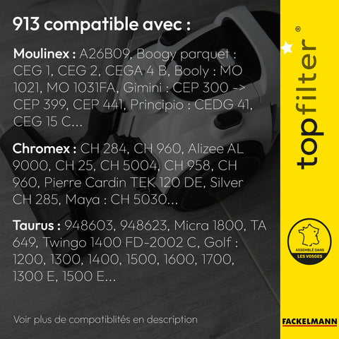 Les sacs aspirateur TopFilter multicouches en non-tissé (100% synthétique) sont fabriqués et conditionnés en France. Ils sont équipés d’une plastiquette avec un joint en non-tissé et une fermeture hygiénique pour une haute capacité de filtration et une étanchéité sans défaut.