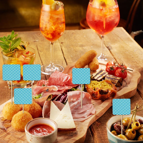 Pour rendre votre table d'apéritif plus attrayante et festive, utilisez ces piques en bois avec des petits drapeaux pour les planter dans les dés de fromage, dans les tomates cerises, dans les fruits, dans les olives etc.