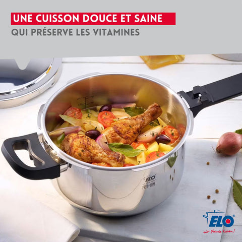 Équipé des dernières technologies, l’autocuiseur Elo Mistral est doté d'une fonction de régulation automatique de la vapeur, et d'un dispositif de sécurité qui empêche le couvercle de s'ouvrir si la pression est trop élevée.