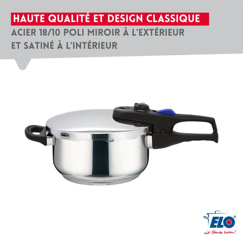 Avec son mécanisme de sécurité de régulation automatique de la pression, vous pouvez cuisiner en toute sécurité, et disposez de 2 modes de cuisson différents. Sa finition élégante et sa compatibilité lave-vaisselle font de ce produit un atout incontournable pour votre cuisine. Garantie 4 ans, ELO vous assure qualité et longévité.