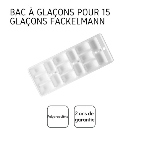 Fackelmann propose ce bac à glaçons en plastique blanc. Le moule à glaçons est parfait pour faire jusqu'à 15 glaçons en même temps.