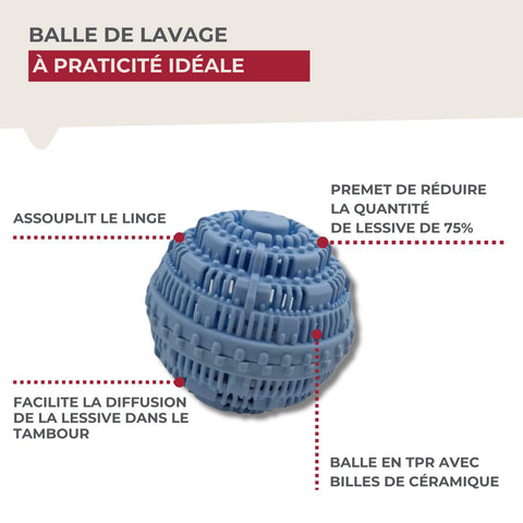 Compatible avec lessive liquide et en poudre, cette balle peut être utilisée pendant environ 200 cycles, à une température maximale de 60°C. Ne l'utilisez pas dans un sèche-linge.