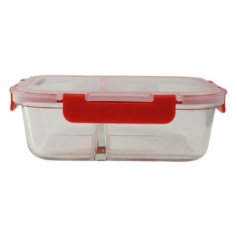 Fackelmann vous propose cette lunch box ou boîte à repas en verre avec un couvercle à 4 clips en plastique. Cette boîte possède deux compartiments pour séparer la viande et les légumes ou l'entrée du plat.