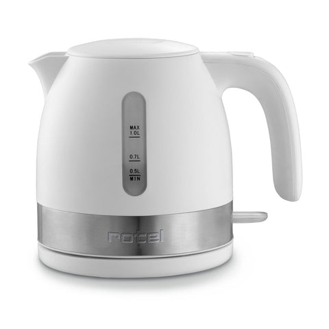 Rotel propose cette bouilloire électrique en plastique cerclée inox d'une capacité d'un litre. La bouilloire est sans fil ce qui permet de la manipuler facilement.