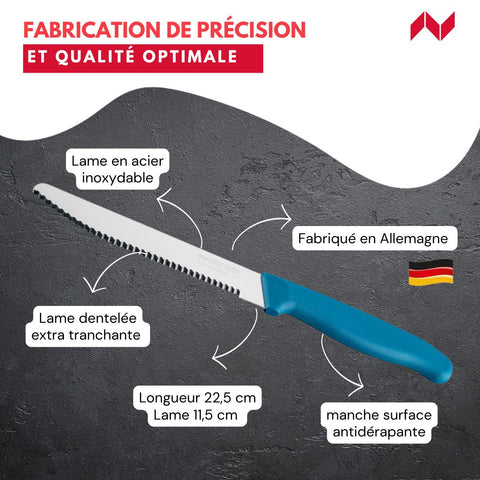 Ce couteau fabriqué en Allemagne allie un design coloré à une fabrication de précision et une qualité optimale.