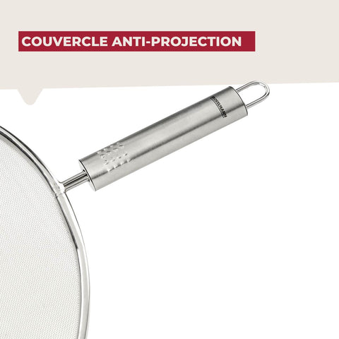 Cet ustensile de cuisine est un couvercle anti-projection qui se place sur une poêle ou une casserole afin d'éviter les projections d'huile, de graisses ou autres sur votre plaque de cuisson, mais aussi sur vous. Le couvercle anti - éclaboussures est un grillage en acier inoxydable retenant entre autres les projections d'huile.