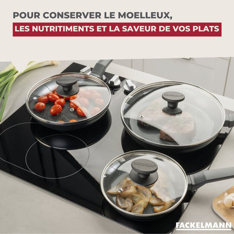 Découvrez le couvercle de cuisson Fackelmann en verre haut de gamme de 32 cm, parfait pour vos casseroles et poêles. Équipé d'une poignée en bakélite résistante, il offre une manipulation sûre. Il convient à toutes les casseroles, poêles, marmites, faitouts etc... de même diamètre.
