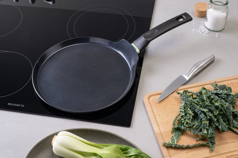 Découvrez la poêle à crêpes Fackelmann Brandao de 26 cm, en aluminium pressé recyclé avec revêtement céramique sans PFAS. Compatible tous feux, elle garantit une cuisson uniforme et un nettoyage facile pour des crêpes parfaites.
