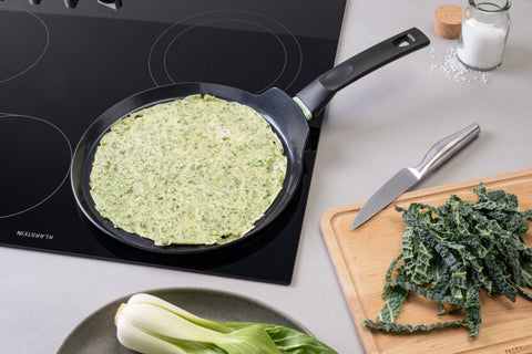 Pour une cuisine alliant performance, longévité et esthétique, choisissez cette crêpière au design élégant noir mat et vert amande.