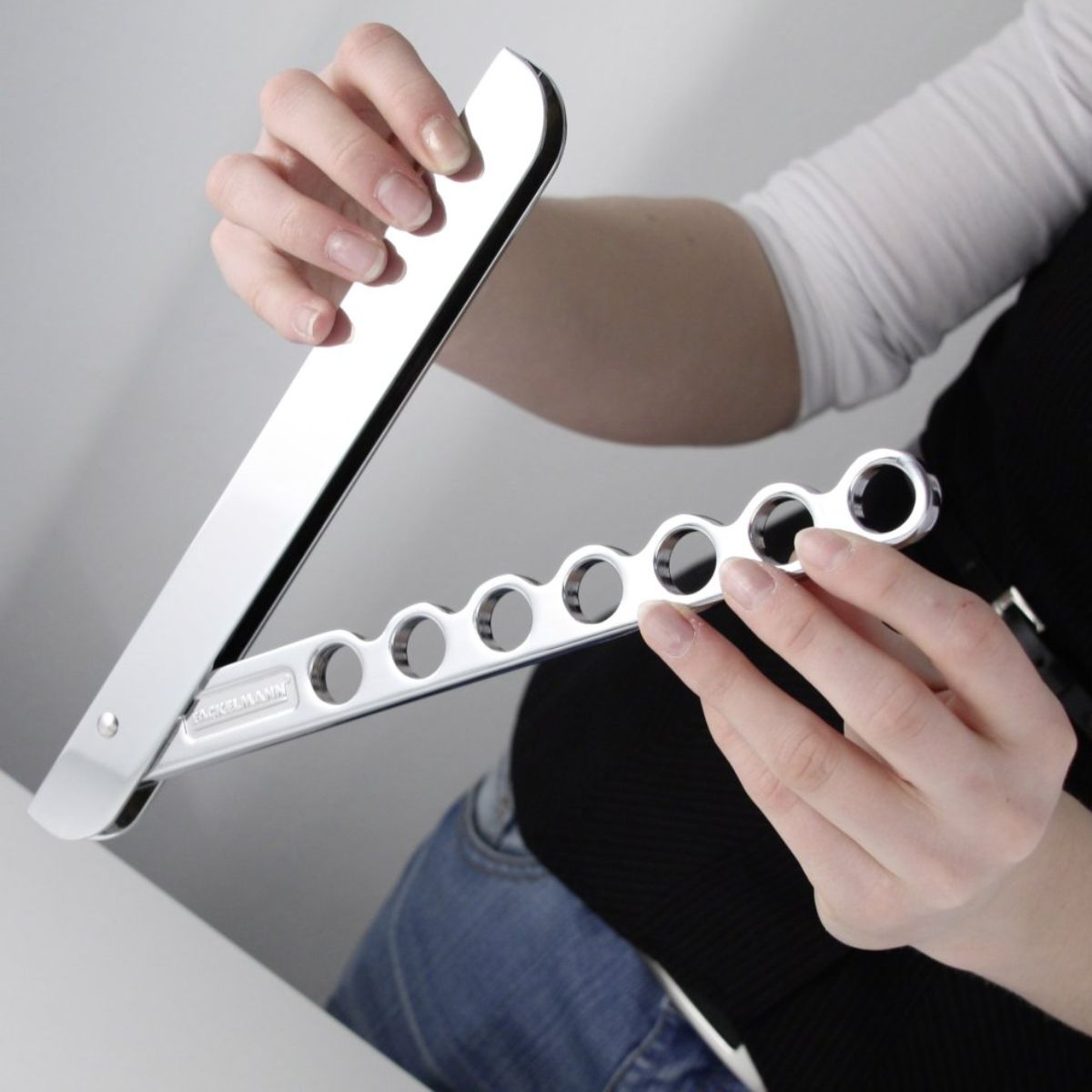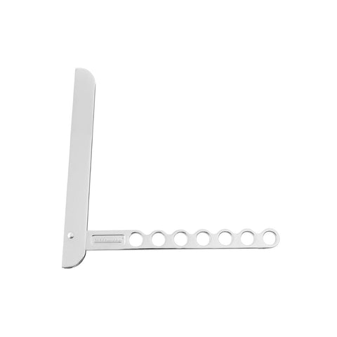 Fackelmann vous propose se crochet pliant en aluminium poli mat pour aérer vos vêtements, et même les sécher. Accessoire idéal si vous manquez un peu de place, le crochet se fixe au mur ou sur une porte, il peut accueillir jusqu'à 7 cintres en même temps.