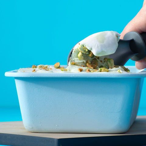 Une boule de glace fraîche, sucrée et crémeuse n'est pas seulement un succès en été. La cuillère à glace Tasty crée des boules rondes parfaites pour les coupes de glace comme chez le glacier. La poignée douce au toucher, bleu foncé, est super confortable dans votre main et, grâce à sa forme astucieuse, vous pouvez facilement creuser la glace.
