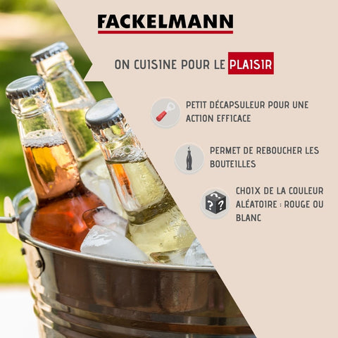 Le décapsuleur / rebouche bouteille Fackelmann est un ustensile de cuisine polyvalent qui allie praticité et fonctionnalité pour toutes vos occasions. Que vous soyez en train de profiter d'un barbecue entre amis, d'un pique-nique en plein air ou simplement de décompresser à la maison, le décapsuleur rebouche bouteille est là pour simplifier votre expérience. Grâce à sa conception ingénieuse, vous pouvez facilement ouvrir vos bières ou autres boissons avec son décapsuleur pratique, puis refermer celles-ci avec sa fonction de rebouchage.