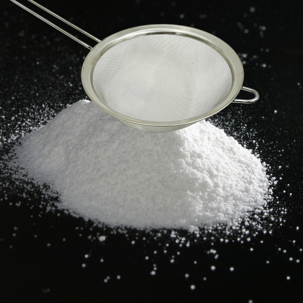 Cette passoire tamise le cacao, le sucre et sucre glace et la farine pour éviter les grumeaux.