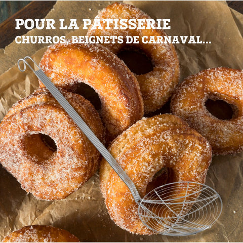 L'écumoire est un accessoire polyvalent car elle est à la fois un ustensile de cuisine et un ustensile de pâtisserie. Effectivement, vous pouvez avoir l'utilité d'une écumoire dans le domaine de la pâtisserie lorsque vous faîtes frire des beignets, des churros, des feuilles de brick fourrées par exemple. Aussi, l'écumoire inox peut servir côté cuisine pour faire entrer et sortir les aliments de l'eau bouillante ou de l'huile bouillante.