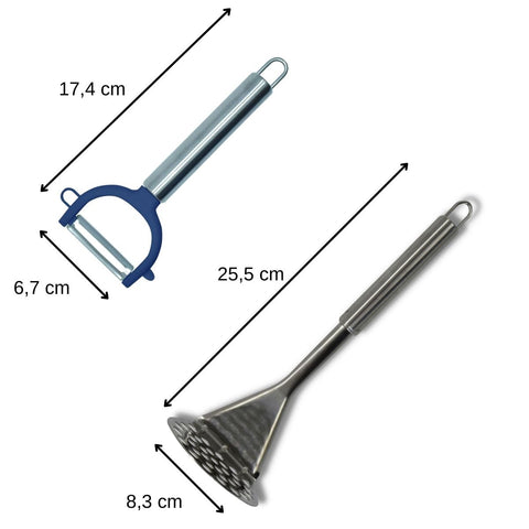 - Eplucheur à légumes : 17,4 x 6,7 x 4,5 cm | Presse-purée : 25,5 x 8,3 x 8 cm