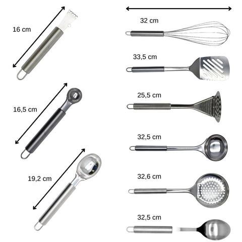 Ensemble d'ustensiles de cuisine en inox