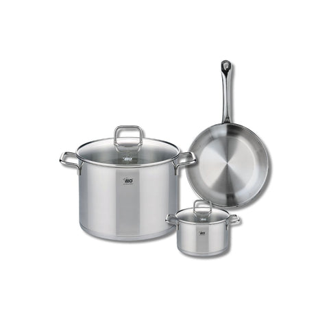 Découvrez l'ensemble de cuisine Elo Profi Citrin, comprenant une poêle de cuisson de 24 cm et deux faitouts de 14 et 26 cm. Confectionnés en inox de haute qualité, ces ustensiles allient robustesse et performance pour vous accompagner dans toutes vos préparations culinaires.