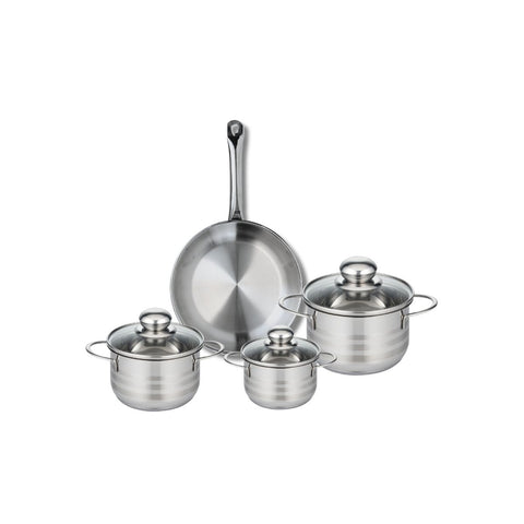 Découvrez l'ensemble de cuisine parfait pour vos besoins culinaires : le lot comprend une poêle de cuisson de 24 cm ainsi que trois faitouts de 12, 14 et 16 cm, tous en inox de haute qualité.