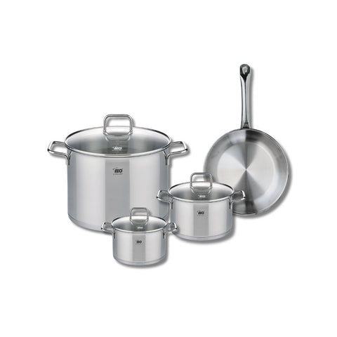 Découvrez l'ensemble de cuisson Elo Profi Citrin, un lot complet de 7 pièces qui allie performance et élégance. Cet ensemble comprend une poêle de cuisson de 24 cm et trois faitouts de 14, 16 et 26 cm, tous fabriqués en inox de haute qualité, garantissant robustesse et longévité.