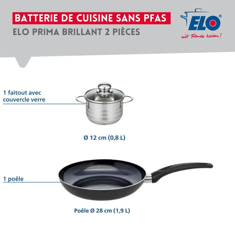Ensemble de 1 Poêle de cuisson 28 cm et 1 faitout 12 cm Elo Prima Brillant