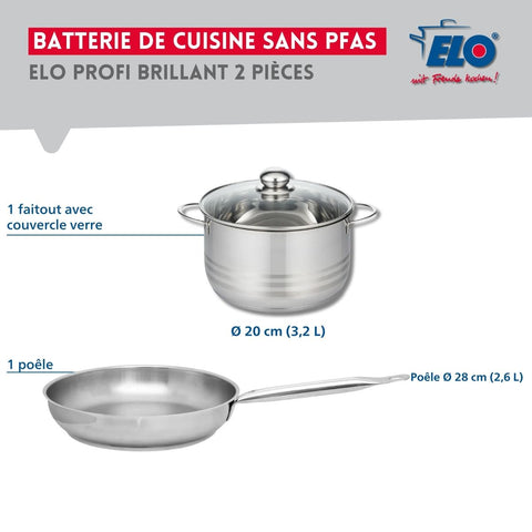 Ensemble de 1 Poêle de cuisson 28 cm et 1 faitout 20 cm Elo Profi Brillant