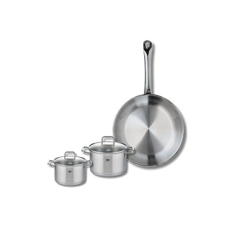 Découvrez l'ensemble de cuisine Elo Profi Citrin, comprenant une poêle de cuisson de 28 cm et deux faitouts de 12 et 14 cm. Fabriqués en inox robuste, ces ustensiles de cuisine sont compatibles avec toutes les sources de chaleur, y compris l'induction. Les poêles Profi Therm et les faitouts offrent une excellente conductivité thermique pour des cuissons parfaites. Sans revêtement et sans PFAS, cet ensemble garantit une cuisson saine et sécurisée. Idéal pour les passionnés de cuisine, il allie praticité et performance.