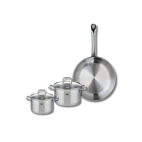 Découvrez l'ensemble de cuisine Elo Profi Citrin, composé d'une poêle de cuisson de 28 cm et de deux faitouts de 14 et 16 cm. Fabriqués en inox robuste, ces ustensiles de cuisine sont adaptés à toutes les plaques de cuisson, y compris l'induction. Leur conception sans revêtement et sans PFAS garantit une cuisson saine et pratique. Que ce soit pour faire sauter, mijoter ou cuire à la vapeur, cet ensemble polyvalent est parfait pour toutes vos préparations culinaires. Ajoutez une touche de qualité à votre cuisine !