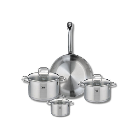 Découvrez l'ensemble de cuisine Elo Profi Citrin, qui allie fonctionnalité et design moderne. Cet ensemble comprend une poêle de cuisson de 28 cm et trois faitouts de 12, 16 et 20 cm, tous en inox de haute qualité, parfaits pour une cuisson saine et efficace.