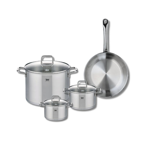 Découvrez l'ensemble de cuisine Elo Profi Citrin, un lot complet et polyvalent comprenant une poêle de cuisson de 28 cm et trois faitouts de 14, 16 et 26 cm, idéal pour tous vos besoins culinaires. Fabriqués en inox, ces ustensiles garantissent une robustesse exceptionnelle et une excellente conductivité thermique pour une cuisson homogène.