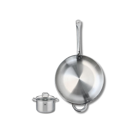 Découvrez l'ensemble de cuisine Elo Profi Citrin, comprenant une poêle de cuisson de 32 cm et un faitout de 12 cm, tous deux en inox de haute qualité. Conçus pour une utilisation sur induction, ces ustensiles se distinguent par leur robustesse et leur design élégant. La poêle permet une cuisson uniforme, tandis que le faitout est idéal pour préparer de délicieuses soupes ou plats mijotés. Sans PFAS, cet ensemble est parfait pour une cuisine saine et performante. Ajoutez une touche professionnelle à vos repas avec Elo.