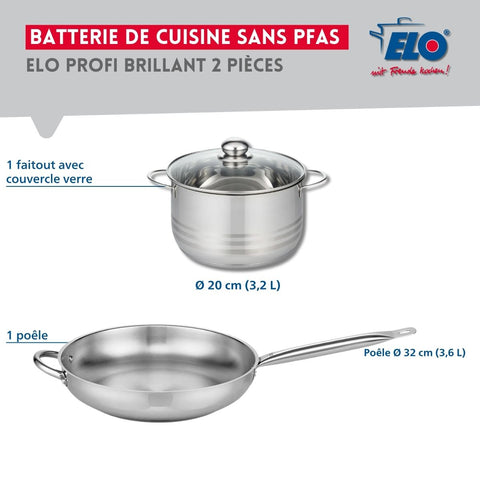 Ensemble de 1 Poêle de cuisson 32 cm et 1 faitout 20 cm Elo Profi Brillant