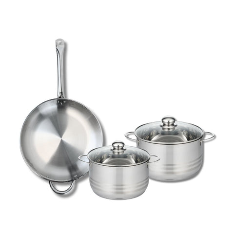 Ensemble de 1 Poêle de cuisson 32 cm et 2 faitouts 20 et 24 cm Elo Profi Brillant