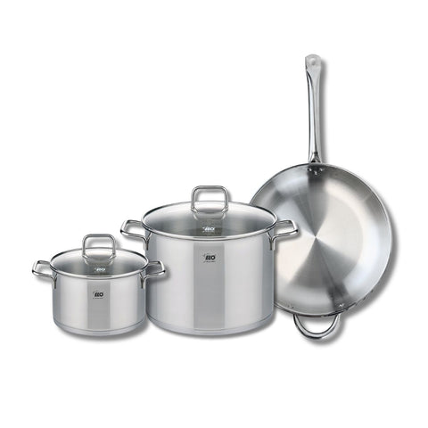 Découvrez l'ensemble de cuisine Elo Profi Citrin, comprenant une poêle de cuisson de 32 cm et deux faitouts de 20 et 26 cm. Fabriqués en inox robuste, ces ustensiles sont parfaitement adaptés à tous les types de feux, y compris l'induction. La poêle Profi Therm garantit une chaleur homogène pour des cuissons réussies. Les faitouts, également en inox sans revêtement, offrent une grande capacité pour préparer vos plats familiaux. Profitez d'une cuisine saine et pratique sans PFAS avec cet ensemble complet.