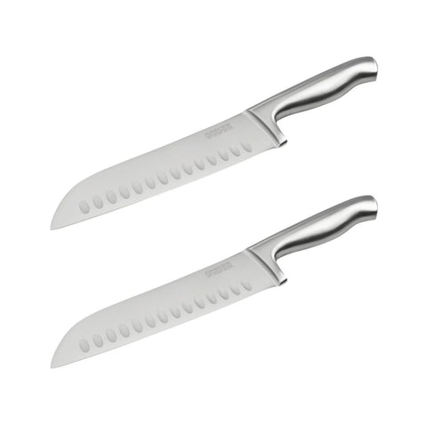 Découvrez le lot de 2 couteaux de cuisine Santoku Nirosta à lame de 18 cm, parfaits pour découper, trancher et ciseler tous vos aliments. Fabriqués en acier inoxydable, ils allient résistance et précision.