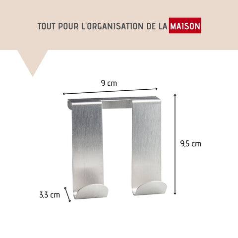 Découvrez le lot de 2 crochets doubles pour porte Fackelmann, l’accessoire idéal pour optimiser votre rangement. Fabriqués en acier inoxydable, ces crochets mesurent 9,5 x 9 x 3,3 cm, parfaits pour accrocher vos vêtements, serviettes, peignoirs ou sacs. Ils se fixent facilement sur le dessus d’une porte, d’une paroi de douche ou d’un placard, sans nécessiter de perçage. Grâce à leur profondeur de 3,3 cm, ils supportent des articles épais sans risque de chute. Simplifiez votre quotidien avec Fackelmann, spécialiste des ustensiles de cuisine pratiques.
