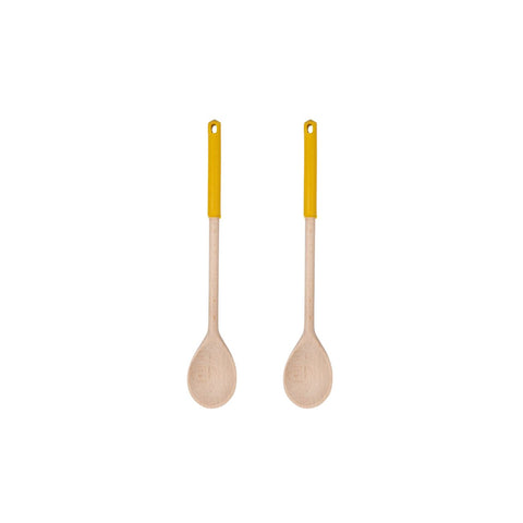 Ensemble de 2 Cuillères de cuisine en bois avec manche en silicone coloré Fackelmann Wood Edition
