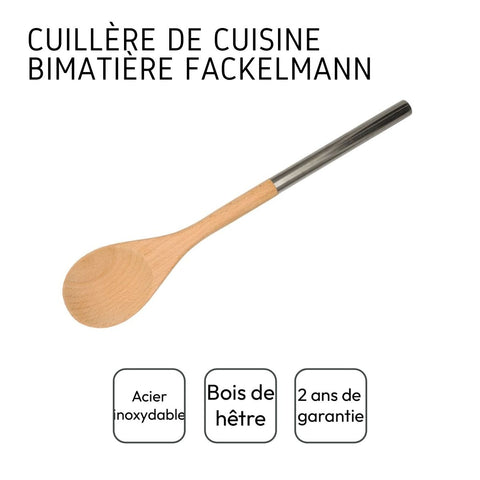Découvrez le lot de 2 cuillères Fackelmann en bois de hêtre avec un élégant manche en inox. Parfaites pour mélanger vos soupes, risottos ou gâteaux.