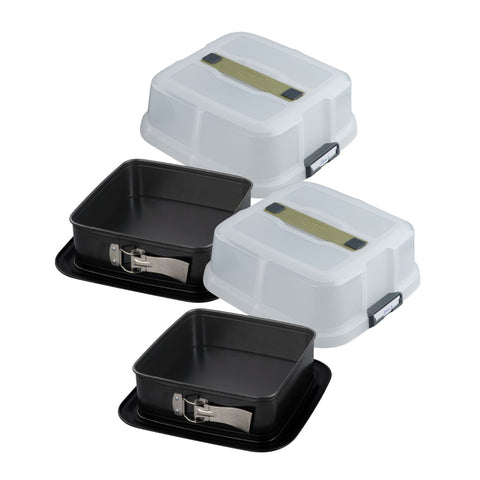 Découvrez ce lot de 2 moules à charnière carrés de 23 cm avec couvercle de transport. Idéal pour vos gâteaux, brownies ou gratins, ils sont pratiques pour partager vos créations avec vos proches.
