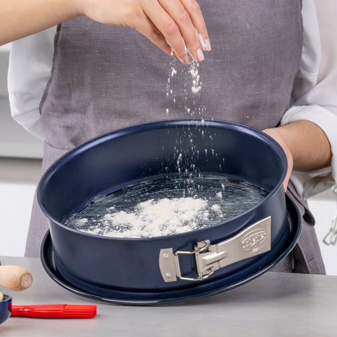 Ce lot de 2 moules à manqué à charnière de 26 cm de Dr.Oetker est parfait pour tous vos besoins de pâtisserie. Fabriqués en Allemagne, ces moules en acier renforcé avec un revêtement antiadhésif vous permettent de préparer une variété de gâteaux, même ceux contenant des fruits acides. Leur design élégant en bleu foncé et doré ajoute une touche de sophistication à votre cuisine. Le plateau de présentation de 27,5 cm est ultra résistant, idéal pour servir vos créations. Pratiques, ces moules sont faciles à nettoyer, avec un plateau passe au lave-vaisselle et un moule résistant au four jusqu'à 230°C. Que vous fassiez un anniversaire ou un goûter, ces moules vous garantissent des résultats parfaits.