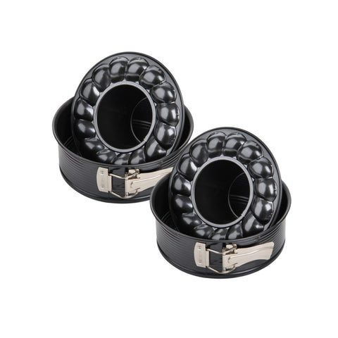 Ce lot de 2 moules à manqué à charnière avec fond à savarin de 18 cm Zenker Black Metallic est parfait pour réaliser des gâteaux ronds. Fabriqués en Allemagne, ils offrent un démoulage facile grâce à leur revêtement anti-adhésif de haute qualité.