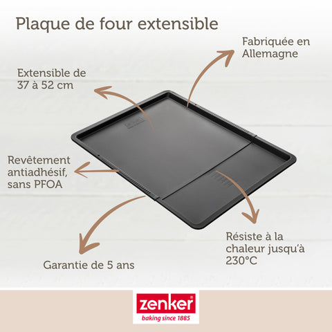 Ce lot de 2 plaques à pâtisserie extensibles Zenker est l'ustensile parfait pour tous vos besoins culinaires. Avec des dimensions ajustables de 37 à 52 cm, ces plaques en acier se prêtent à la cuisson de biscuits, de légumes et de viandes. Leur revêtement en Téflon antiadhérent garantit une cuisson parfaite et un démoulage facile. Que ce soit pour vos repas quotidiens ou pour réaliser un gâteau roulé, ces plaques polyvalentes sont indispensables. Faciles à manipuler et à nettoyer à la main, elles ne vont pas au lave-vaisselle. Compatible avec tous les fours, ces plaques vous permettront de cuisiner en toute simplicité.