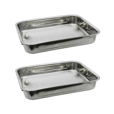 Découvrez notre lot de 2 plats à lasagne en inox rectangulaires de la marque Elo. Parfaits pour rôtir, gratiner ou cuire, ils allient esthétique et praticité. Dimensions extérieures : 27,5 x 20,4 x 6 cm.
