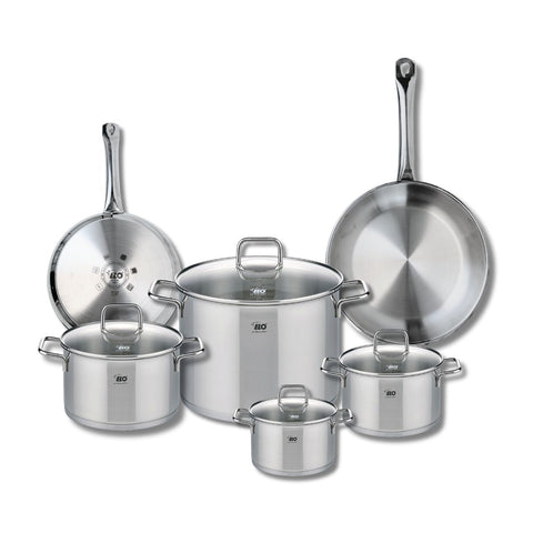 Découvrez l'ensemble de cuisine Elo Profi Citrin, un lot complet de 10 pièces qui allie fonctionnalité et élégance. Cet ensemble comprend deux poêles de cuisson de 24 et 28 cm, idéales pour saisir, rôtir ou faire sauter vos plats préférés. Fabriquées en inox sans revêtement, ces poêles assurent une distribution uniforme de la chaleur et sont parfaitement adaptées à tous les types de feux, y compris l'induction.