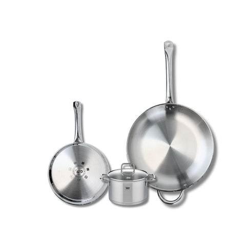 Découvrez l'ensemble de cuisine Elo Profi Citrin, comprenant deux poêles de cuisson de 24 et 32 cm, ainsi qu'un faitout de 14 cm. Fabriquées en inox robuste, ces poêles Profi Therm et le faitout assurent une excellente conduction de la chaleur. Tous les produits sont compatibles avec l'induction et ne contiennent pas de PFAS, garantissant une cuisson saine. Cet ensemble est parfait pour préparer vos plats préférés avec style et efficacité, tout en ajoutant une touche d'élégance à votre cuisine.