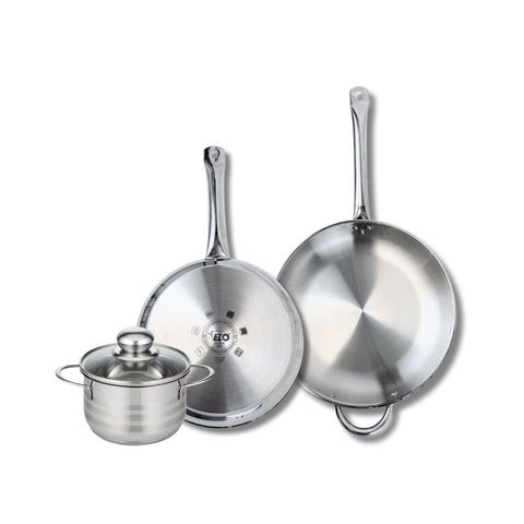 Ensemble de 2 Poêles de cuisson 28 et 32 cm et 1 faitout 16 cm Elo Profi Brillant