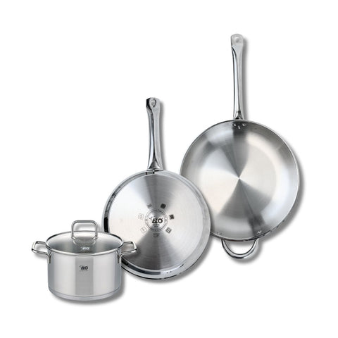 Découvrez l'ensemble de 2 poêles de cuisson et 1 faitout Elo Profi Citrin, un choix idéal pour les amateurs de cuisine en quête de qualité.